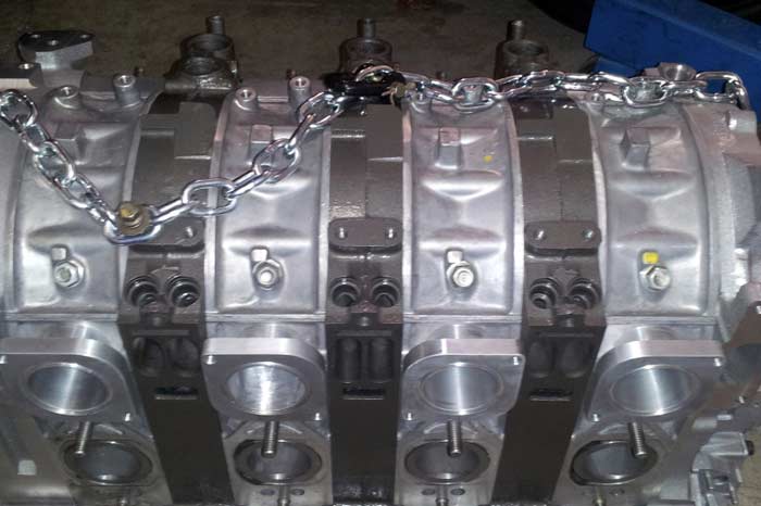 Uses late style 13B side housings, all side housings are reconditioned and re-nitrated for brand new finish. 9.7:1 rotors, fitted with all new side seals, corner seals, oil retaining rings, oil o-rings, coolant o-rings and springs. High performance 2mm apex seals with brand new springs. Brand new rotor housings, machined and fitted with full peripheral port, "race" port exhaust.
