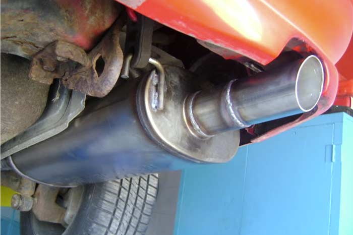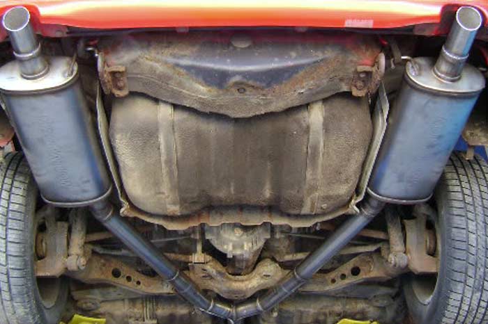 We're not bragging. We just hate weld spatter on a brand new muffler or sloppy weld seams on a brand new exhaust pipe. To us it's unacceptable. The under side of this Mazda Gen 2 may be rusty, but that doesn't mean we lower our craftsmanship.